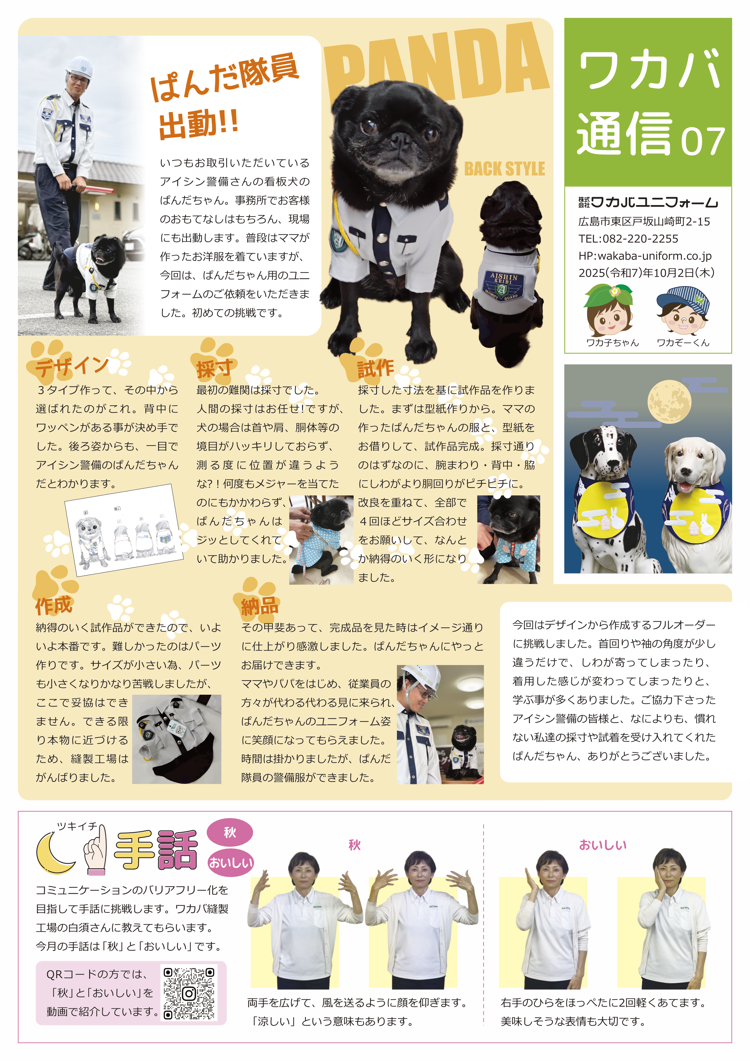 株式会社ワカバユニフォームは広島で働く方の企業ユニフォームを専門として62年を迎えました。